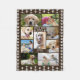 Easily create a memorial keepsake photo collage blanket for a beloved dog personalised with nine photos, an editable title area--the sample reads BEST DOG EVER --their name and dates with a background pattern of dog paw prints and hearts. CHANGES: Change the brown background colour and/or change the text font style, size, colour or placement by clicking on CUSTOMIZE FURTHER. PHOTO TIPS: For fastest/best results, choose a photo with the subject in the middle and/or pre-crop it to a similar shape as shown BEFORE uploading and use the CHANGE tab (not drag and drop) to automatically fill the photo template. Contact the designer via Zazzle Chat or makeitaboutyoustore@gmail.com if you'd like this design modified or on another product.