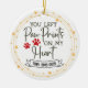The holiday season can be tough when you're missing a furry friend, but now you can honour their memory and keep them close with our "Always in Our Hearts" pet memorial ornament. With a bright red paw print in the centre and delicate angel wings, this ornament is a touching tribute to the pet who will always hold a special place in your heart. The bottom of the ornament can be personalised with your pet's name, making it a unique and cherished addition to your holiday decor. Hang it on your tree or display it in a special place to remind you of all the love and joy your pet brought into your life. Honour their memory this holiday season with our pet memorial ornament.