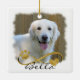 Easily create a photo memorial keepsake ornament of a beloved dog personalized with the dog's name and year with an infinity loop design incorporating a dog paw print and heart in a gold brown, black and white color scheme. Contact the designer via Zazzle Chat or makeitaboutyoustore@gmail.com if you'd like this design modified or on another product.