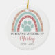 Introducing our DIY Pet Memorial Ceramic Ornament, the perfect way to memorialise a beloved pet and cherish their memory forever. This personalised pet memorial ornament allows you to capture the essence of your furbaby by incorporating a cherished photograph of your pet. Simply choose your favourite image. With the option to add your pet's name, this ornament becomes a heartfelt tribute unique to your pet. Display on your holiday tree or as a year-round keepsake. The design features a blue pawprint surrounded by a boho rainbow with hearts and pawprints and the words, In Loving Memory, your pet's name and the years, or leave blank if you prefer.