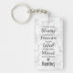 Keychain is double sided , one side Quote " Your life was a Blessing , your memory a Treasure , you are Loved beyond words , Missed beyond measure "