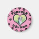 A comforting dog memorial in pink with paw prints and the words "Forever in our hearts."