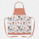Cute brown, white and grey dog mother with baby pups and flowers pattern and peach scalloped border all-over print Apron.