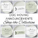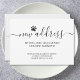 This modern dog moving announcement card is decorated with stylish script typography and a dog paw.