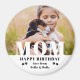 Dog Mum Happy Birthday Modern Personalised Photo Magnets. This modern design features a "MOM" white text overlay on your favourite photo on a white background with the editable text "Happy Birthday (your text and name)" is written in modern typography accented with paw prints. Personalise the text by editing the text box. Created by Evco Studio www.zazzle.com/store/evcostudio
