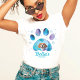Dog Mum Paw Custom Photo Blue Glitter design T-Shirt. Matching products can be found in Dog Mum Glitter Photo Paw Collection.