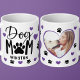 Show off your love for your furry best friend with this custom Dog Mum coffee mug. Featuring a stylish "Dog Mum" design with paw prints and purple hearts, this mug is fully customisable with your pet's name and a cherished photo on the back. Perfect for every dog mum who adores her pup, this mug brings warmth to mornings with a reminder of that loyal bond. A thoughtful gift for any dog lover who appreciates a personal touch in their coffee or tea time.