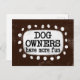 "Dog Owners Have More Fun" is a cute text design in brown with black text, along with a white accent shape and white textured whimsical dots surrounding it.