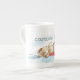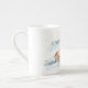 This mug has an illustration of a cute puppy and its parents, a bald man and a brunette woman. You can customise the text.