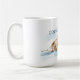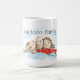 This mug has an illustration of a cute puppy and its parents, a bald man and a brunette woman. You can customise the text.