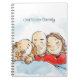 This notebook has an illustration of a cute puppy and its parents, a bald man and a brunette woman. You can customise the text.