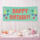 Dog Happy Birthday party banner with dog paw prints border and colourful party confetti background. Welcome guests to a dog themed birthday party or a birthday party for a particular dog!