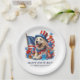 Dog Patriotic Top Hat Red White Blue Stars Stripe Paper Plate