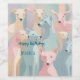 This image is a pastel-toned abstract illustration of a group of dogs in various shades of soft pink, blue, beige, and green. The composition features elegant, stylised depictions of canines, each with minimalistic yet expressive details. The background complements the figures with soft gradients and overlapping shapes, creating a dreamy and artistic atmosphere. The overall aesthetic conveys calmness, unity, and a modern, artistic vibe.