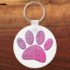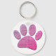 Cute cartoon style dog paw print with burlap texture. Custom key chains. Pink colour version.