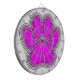 A dog paw print cartoon style with outlines. Original design in pink. For people that love dogs.