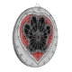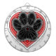 A cartoon style dog paw print in a red heart with outlines in black. Original design for people that love dogs.