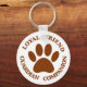 A dog paw print with distressed effect. Text and and drawing in brown.