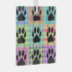 A colourful dog pattern quilt. Stripes and squares in many colours. Custom ornaments. All digital image.