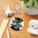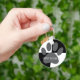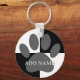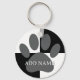 Cartoon dog paw print in grey. Squares in black and white in the background. Neutral colours. Custom keychains for homes and businesses like pet shops. Edit name to customise.
