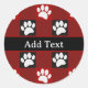 Dog Paw Print Buffalo Plaid In Black and Red Classic Round Sticker