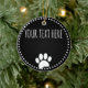 Dog Paw Print Custom Text Black Ceramic Tree Decoration