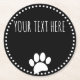Dog Paw Print Custom Text Black Round Paper Coaster