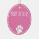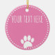 Dog Paw Print Custom Text Pink Ceramic Tree Decoration