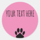 Dog Paw Print Custom Text Pink Classic Round Sticker
