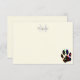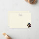 Dog paw print with confetti and party streamer. Custom cream off-white monogram note cards for events related to dogs. Edit initial and name to customize. Great for personal and for businesses like pet shops, dog walkers and groomers.