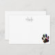 Dog paw print with confetti and party streamer. Custom monogram note cards for events related to dogs. Edit initial and name to customize. Great for personal and for businesses like pet shops, dog walkers and groomers.