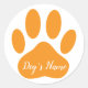 Dog Paw Print With Custom Name Orange Classic Round Sticker