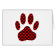 Dog paw print with heart pattern. Original drawing in red and black.