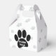 Cartoon dog paw print in black. Custom favour boxes in black and white. Party decor idea for dog lovers, pet shops and groomers.