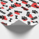Cute cartoons style dog paw and bones. Custom gift wrapping paper rolls. Red heart pattern version.