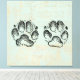 A vintage style dog paw prints illustration art design featuring old fashioned antique paw prints art with an aged mint green paper background with music notes and more designs.