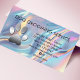 Unique and attractive professional pet dog grooming service holographic design business card with social media handle. Personalise this with your own groomer service business name and details to make it your own. Stand out from the competition with this stylish rainbow holograph design card!