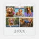 This simple and elegant square Christmas ornament is a sweet way to celebrate your dog during the holiday season. The design features a collage layout with space for five photos on both the front and back, making it a double-sided keepsake full of your favourite pup memories. Your dog’s name is displayed under the collage on the front in a classic serif font, with a customisable line of text below it. You can leave it as "Happy Pawlidays," or change it to a short love note, "In Loving Memory," or "Forever in Our Hearts" for a memorial piece.