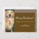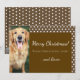 Add a fun touch to your Christmas greeting with this custom holiday card that features a photo of your best pal and the names of your family members. This festive card has a warm dark brown background with a side pattern of white polka dots. The card also works well as a custom personalised note for a family with a new dog or cat!