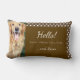 Add a fun touch to your home decor with this custom lumbar pillow that features a photo of your best pal and the names of your family members. This pillow has a warm dark brown background with a side pattern of white polka dots. This pillow also works well as a custom gift for a family with a new dog or cat! The lumbar pillow would also be a cute personalised birthday, bridal shower, wedding, housewarming, Christmas, or other holiday gift.