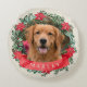 Dog Photo and Name Poinsettia Wreath Holiday Plaid Round Cushion