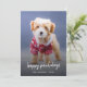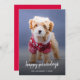 Send joy from your furry friend this festive season with this simple, stylish custom pet photo card featuring the playful quote “Happy Pawlidays” in modern handwritten script typography. The clean minimalist design pairs a subtle black gradient with a cheerful raspberry red background for a fun, contemporary look. Personalise easily with your pet’s name and favourite photo to create a unique keepsake that celebrates your beloved companion. The sample image shown is for illustration purposes only and can be replaced with your own photo. Perfect for pet lovers who adore chic design with a touch of festive cheer, this modern holiday card is a sweet way to share smiles all season long.