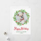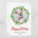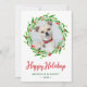 This beautiful photo Christmas card with a photo of your dog or child inside a gorgeous watercolor Christmas wreath, Happy Holidays in a modern brush script font, your last name and the year would be perfect for sending to your friends and family. Everyone will love getting new photos of you or your dog. The fonts are modern and clean. On the back there is a coordinating red stripe with gold splatter. To make this card your own, simply select Personalise this template, upload your favourite photo and type in your name and the year. It's super easy! In just seconds you will see your unique and fabulous photo holiday cards.