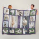 Celebrate the simple joys of your furry family member with a cute photo collage large fleece dog blanket. The pictures and all text on this template are simple to personalise, and all colours and fonts can be customised using the Zazzle design tool. (IMAGE PLACEMENT TIP: An easy way to position a photo exactly how you want is to crop it before uploading to the Zazzle website.) The purple and white design features pet's name in a minimalist typewriter style typography and a modern photo grid with 16 pictures of your choice. Create your own unique keepsake bedspread or pet memorial sympathy throw blanket. The monogrammed name makes it perfect bedding to send with your pet to the sitter, kennel, boarding facility, or veterinarian.