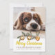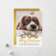 Dog Photo Merry Christmas Family Name Gold Foil Holiday Card