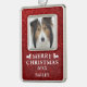 Dog Photo Merry Christmas Red Glitter Name Silver Plated Framed Ornament