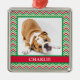 This adorable Christmas ornament with your dog's photo and name on white, red and green chevron would be so cute on your tree. It also makes a great gift! Get a couple for your dog loving friends and family.