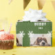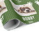 Dog Photo Snowflakes Green Pet Name Christmas Wrapping Paper