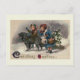 Designed by Susan Epps Oliver. Vintage Christmas image of two children with their large retriever type dog. The dog is pulling the sled through the snow and in the sled is a Christmas tree. The little girl has a warm muff for her hands and carries a basket of apples.
