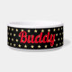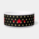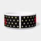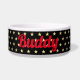 Create your own custom, personalised, bold christmas red rustic vintage western script / typography custom name at front and back, with three stars in the middle and faux gold stars on black background, ceramic, pet dog cat doggy puppy kitten food bowl. Simply enter your pet's name / your text, to customise. Great for birthday, christmas, holidays, new years, and more, for pet dog / cat owners, friends, and family.